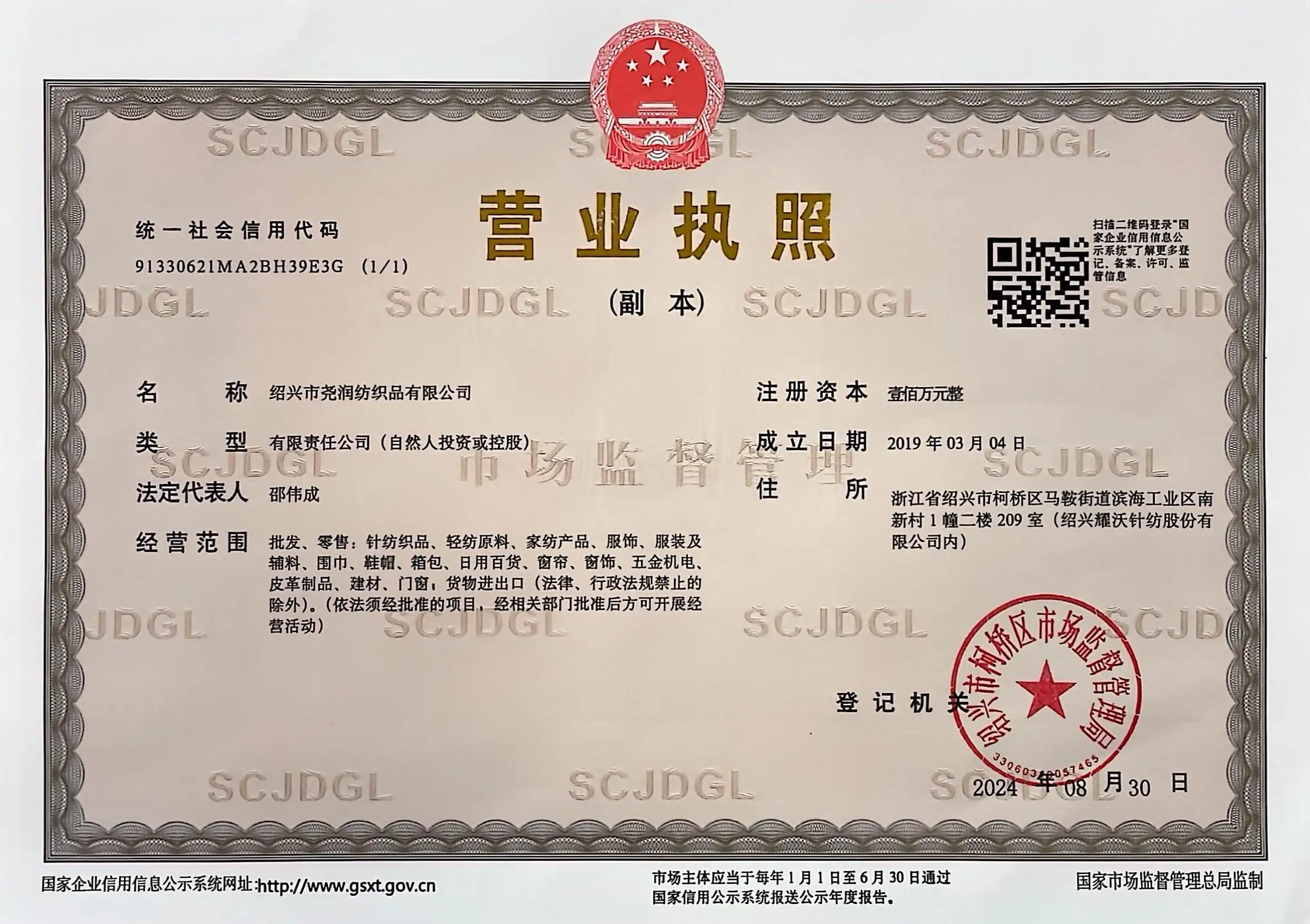 Company Name : Shaoxing Yaorun Textile Co., Ltd.
